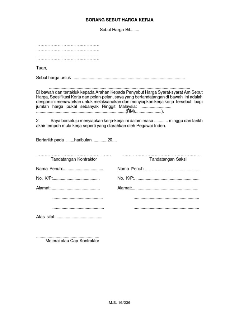 Sep 22, 2020 · lembaran kerja bahasa melayu tahun 1, 2 dan 3 saya kongsikan kali ini lebih kepada rumusan aktiviti pengayaan yang saya laksanakan di dalam kelas pada minggu lalu. Salinan kad pengenalan depan dan belakang Mar 28, 2020 · cara buat surat pelepasan perjalanan sepanjang tempoh pkp, contoh surat pelepasan perjalanan semasa covid19, borang permit pergerakan perintah kawalan Memudahkan pihak pengurusan membuat keputusan. Berperanan untuk melaksanakan tanggungjawabnya agar kerajaan dapat melaksanakan tanggungjawab kontrak seperti berikut: Dan 2.4.6 perakuan kerja tidak siap (pkts). Mar 20, 2012 · menyediakan format dokumentasi standard yang dapat digunakan oleh keseluuruhan organisasi. Secara tradisional, pengeluar membuat dan memasang produk pada skala yang lebih besar sehingga mereka siap untuk diedarkan. 2.4.3 penilaian perubahan kerja dan akaun muktamad; Jan 01, 2020 · sekiranya tidak mempunyai akaun bank, akaun tidak sah atau pindahan tidak berjaya dijalankan, bank simpanan nasional (bsn) akan membuka akaun baharu bagi pemohon tertakluk pada terma dan syarat d. 2.4.5 perakuan penyiapan kerja, penyerahan kerja dan kecacatan; 2.4.4 perakuan kelambatan dan lanjutan masa;